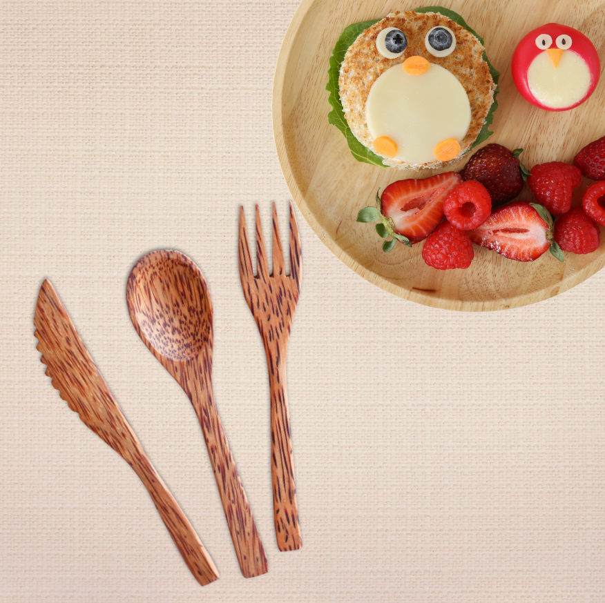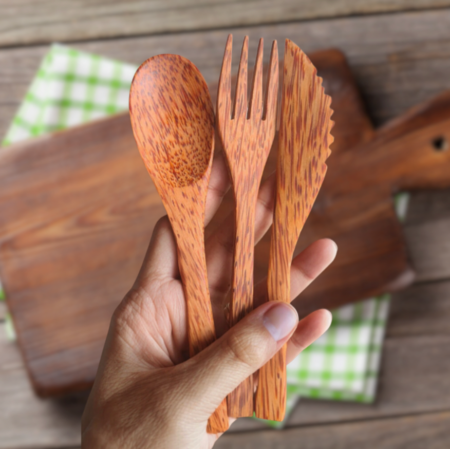 COCONUT WOOD CUTLERY SET(1 SPOON, 1 FORK, 1 KNIFE) (prepaid only)